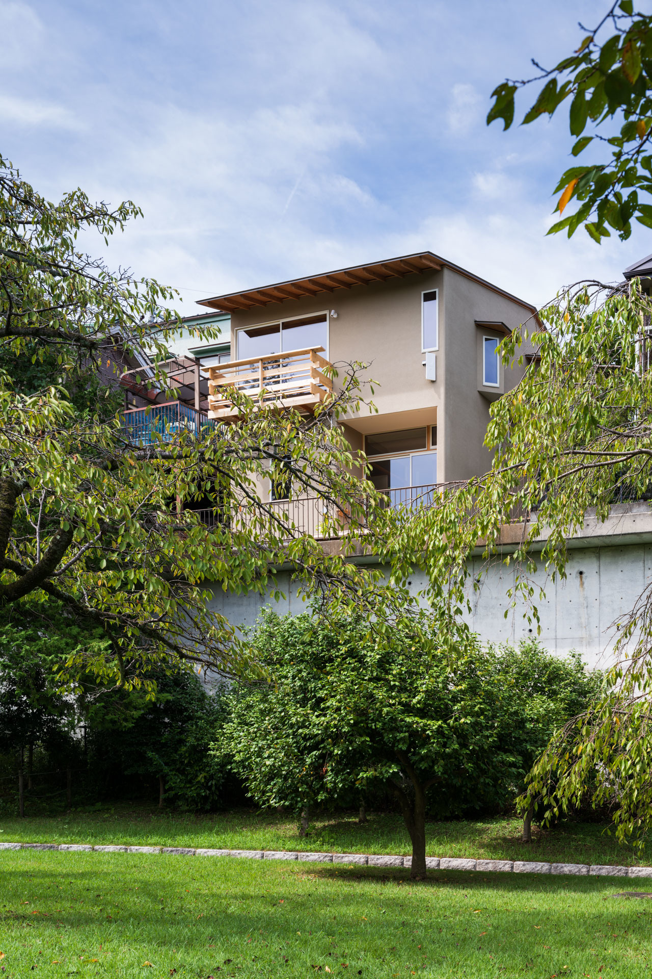 都市公園に面した高台に建つ住宅です。