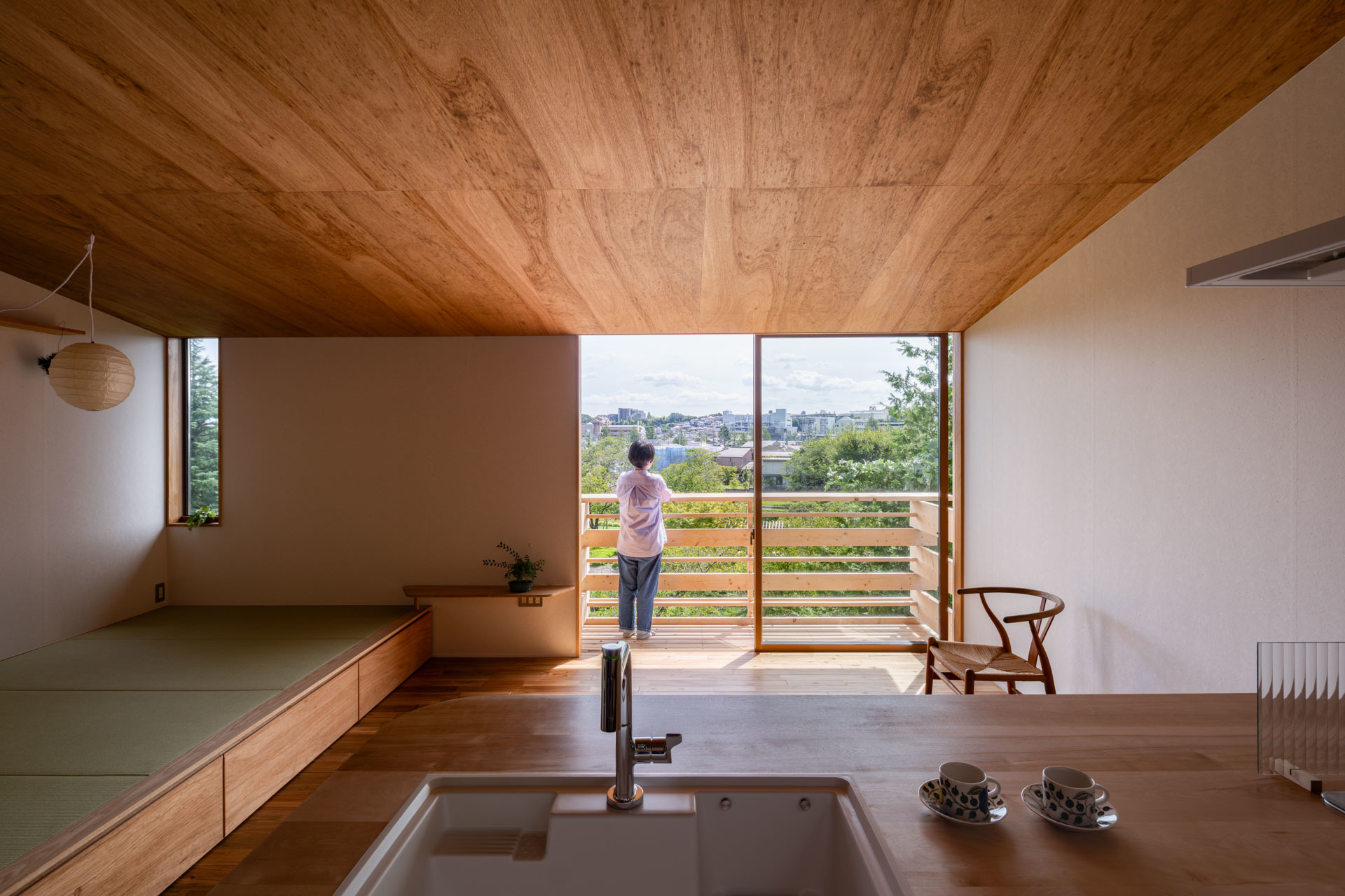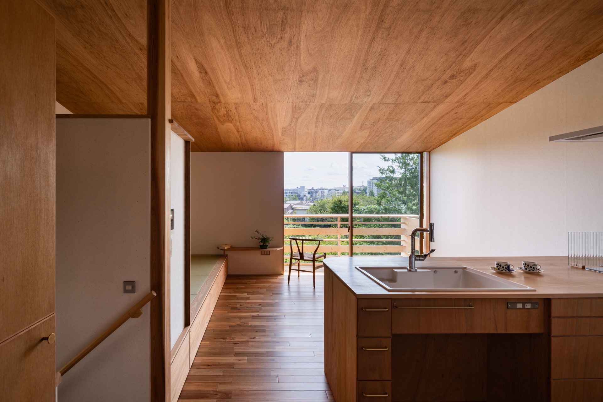 階段を降りるとテラスと一体となるフリースペースです。