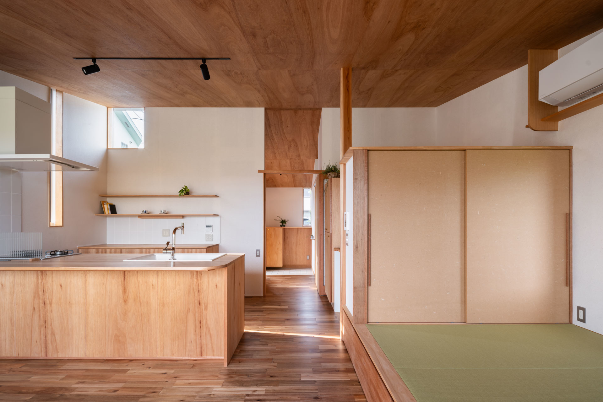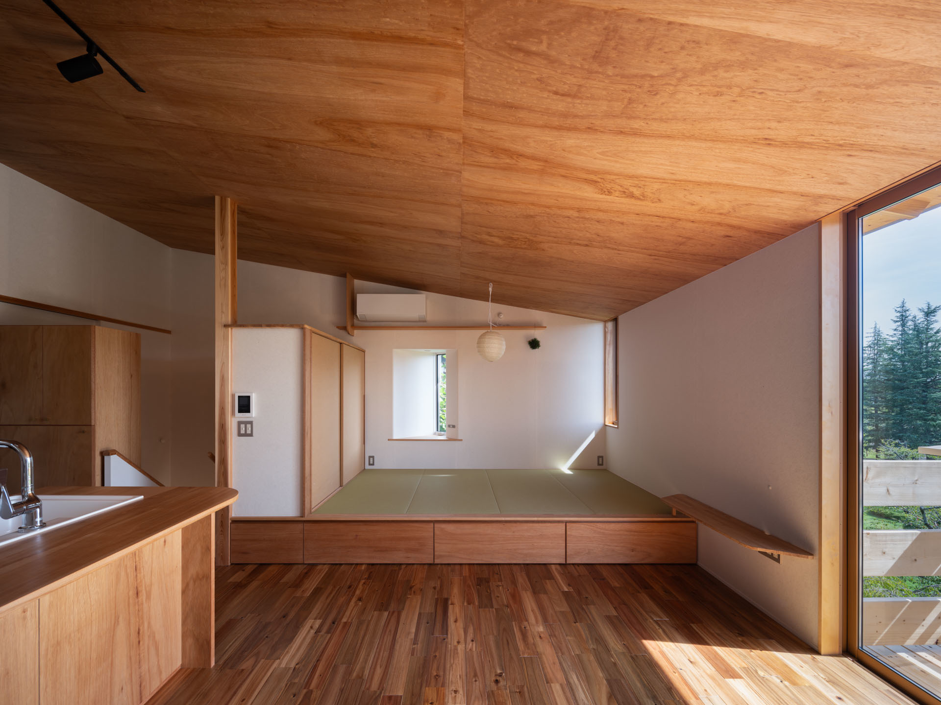 緩やかな勾配天井と北側のハイサイドライト
