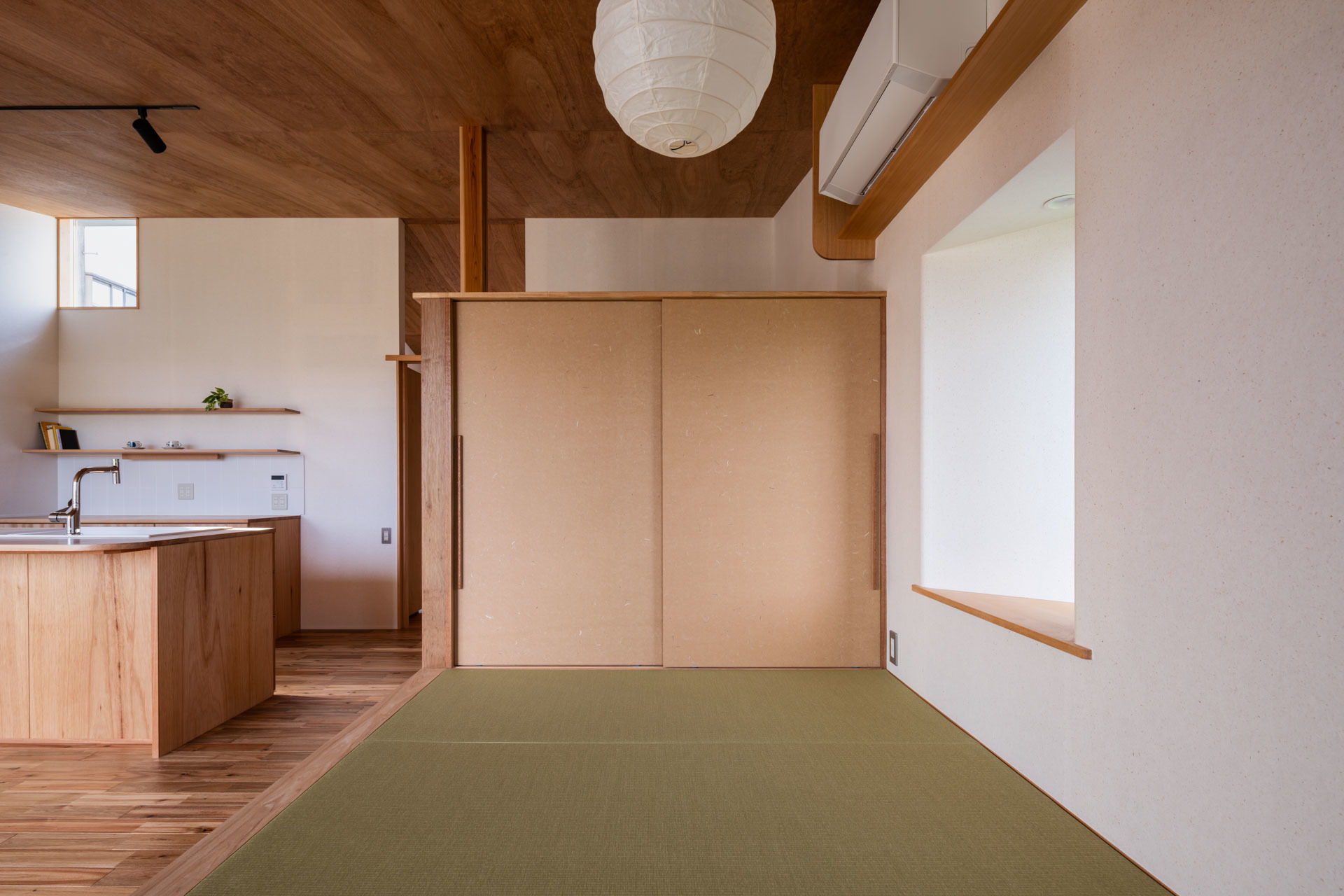 天井に設けた木格子は室内物干し用です。
