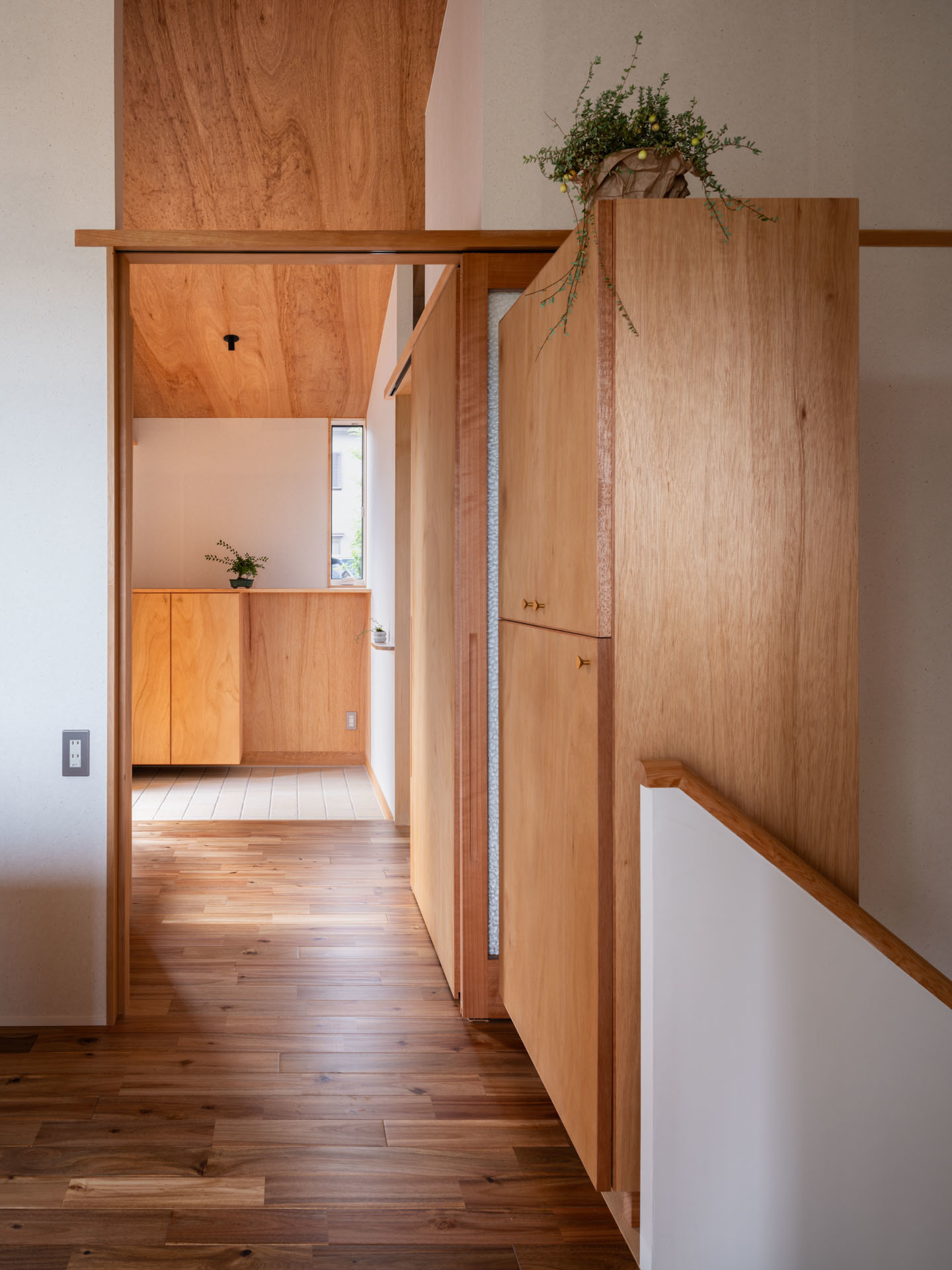 光が白い天井にあたり、柔らかい光が室内をふんわりと明るくします。