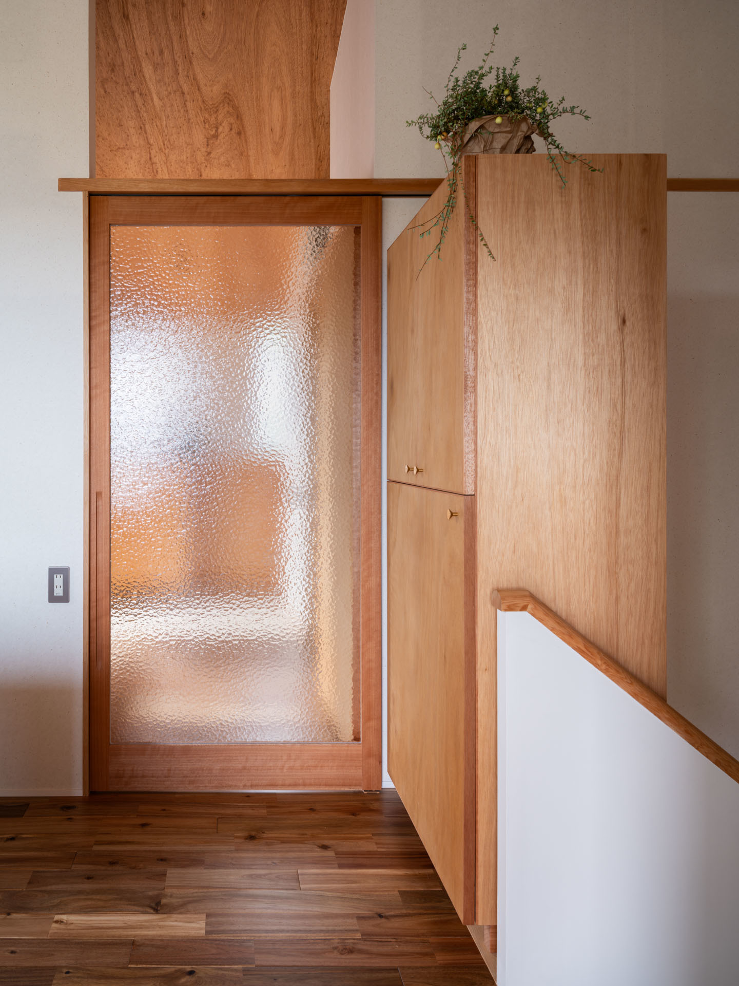 個室の間仕切り壁は上部にガラス欄間を設け、空間が広がるようにしました。