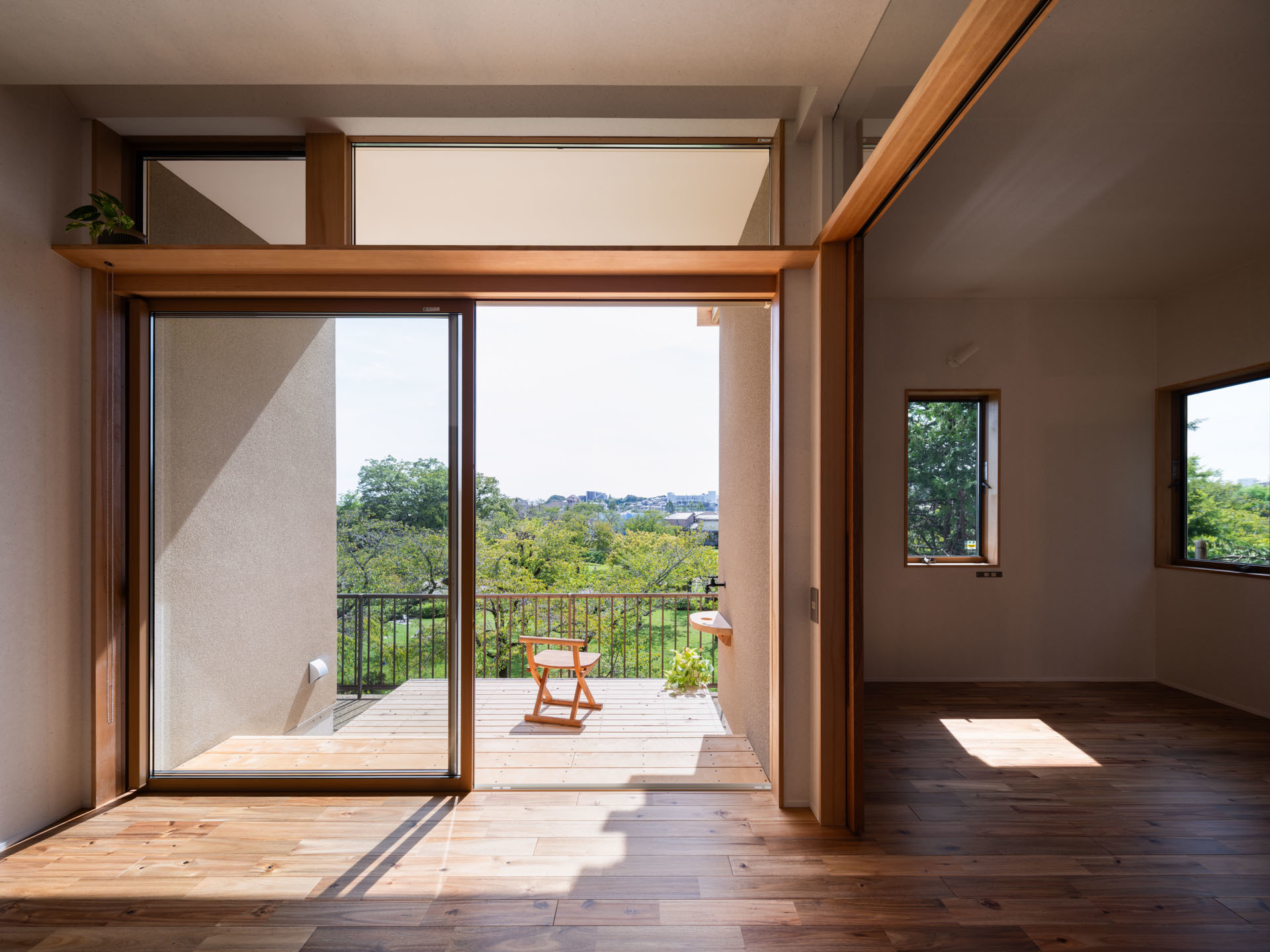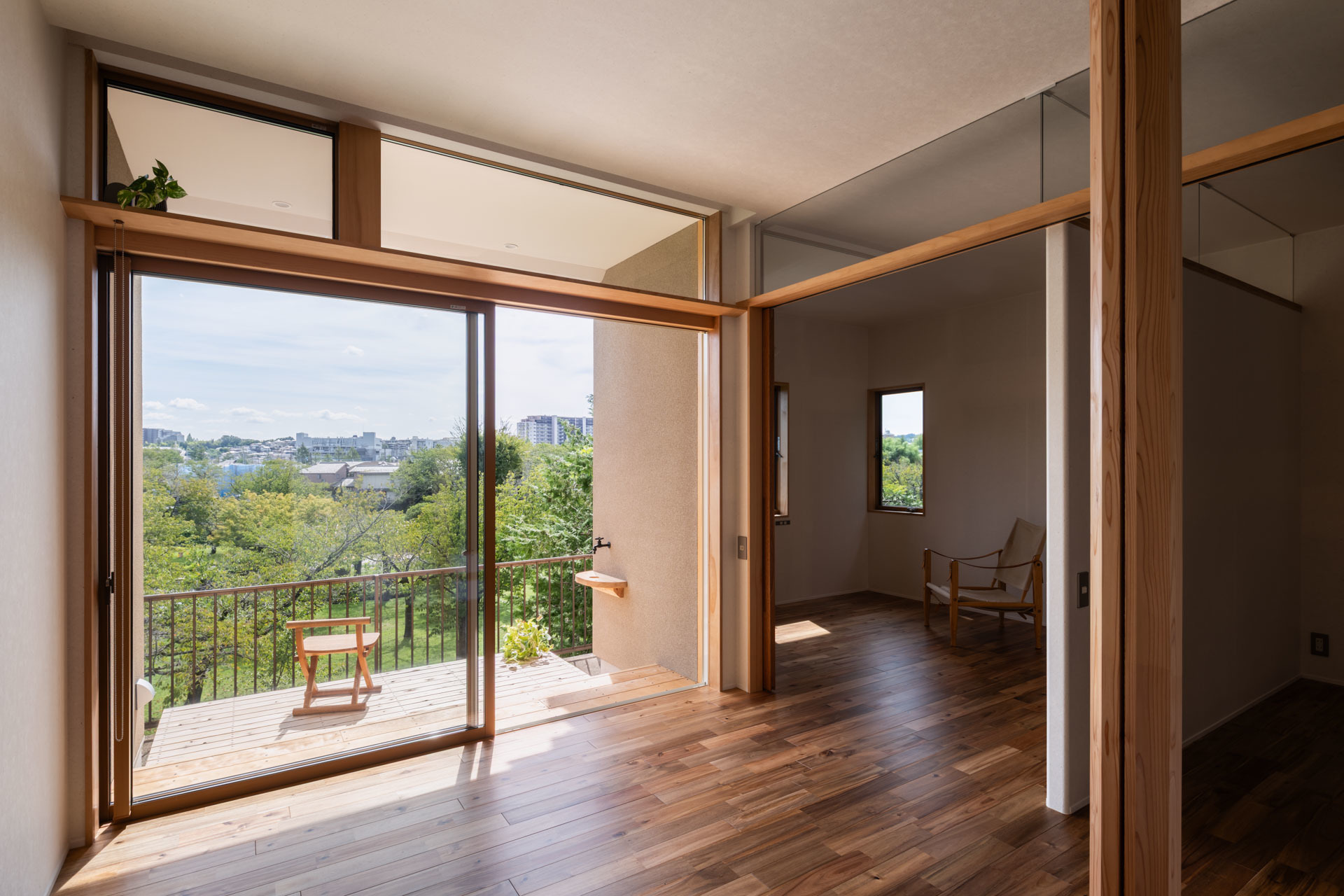 リビングに入ると南面に緑豊かな景色がひろがります。