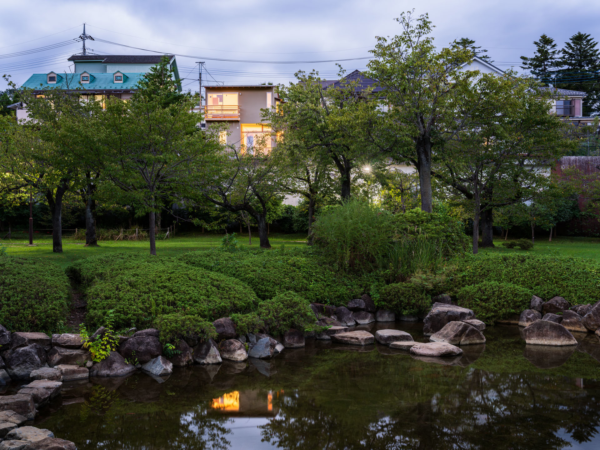 公園から見る高台のちいさな家