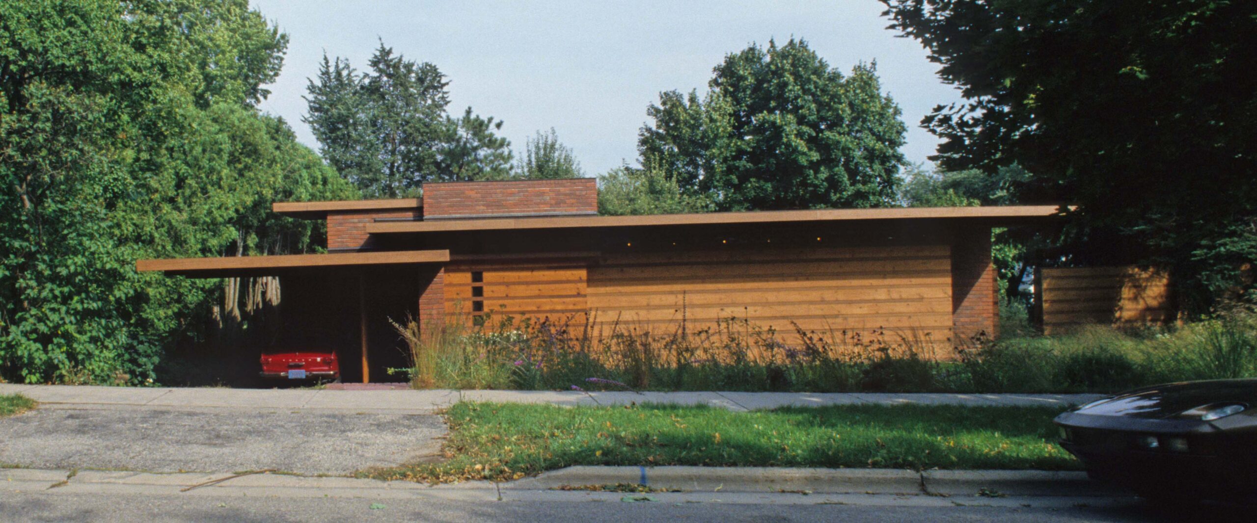 「ユーソニア(Usonia)」とはアメリカ合衆国を指す造語です。ライトはヨーロッパのまねではなく、アメリカ大陸の環境に順応し、アメリカ人の生活にふさわしい快適で経済的な住宅の開発にかねてから熱心でした。世界大恐慌や個人的スキャンダルで仕事を失っていた時期も、架空プロジェクトとして新しい工法の開発に取り組んでいました。そんな時に若い新聞記者Jacobs氏がライトにローコスト住宅を依頼してきたのです。ライトは精力的にこの小住宅に取り組みました。少ない予算に対応するため簡略化された構法を開発し、ローコストとハイクオリティの両立を実現したのです。