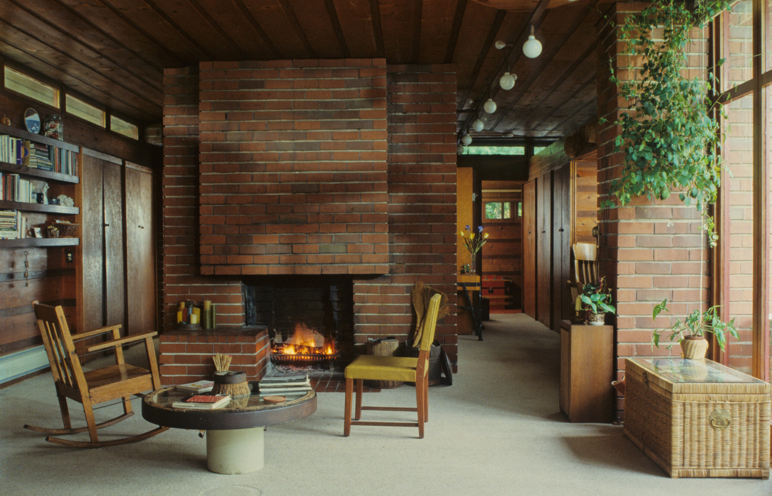 ライトの住宅には必ず暖炉があります。暖炉は単なる暖房器具ではありません。人の心を和ませる生活を豊かにする装置なのです。ライトに学んだ恩師 遠藤楽さんの設計した家にもたいてい暖炉がついています。灰の処理など日本の居住様式に合わせて設計した暖炉は使い易く、僕の方がうまいよと自慢していました。