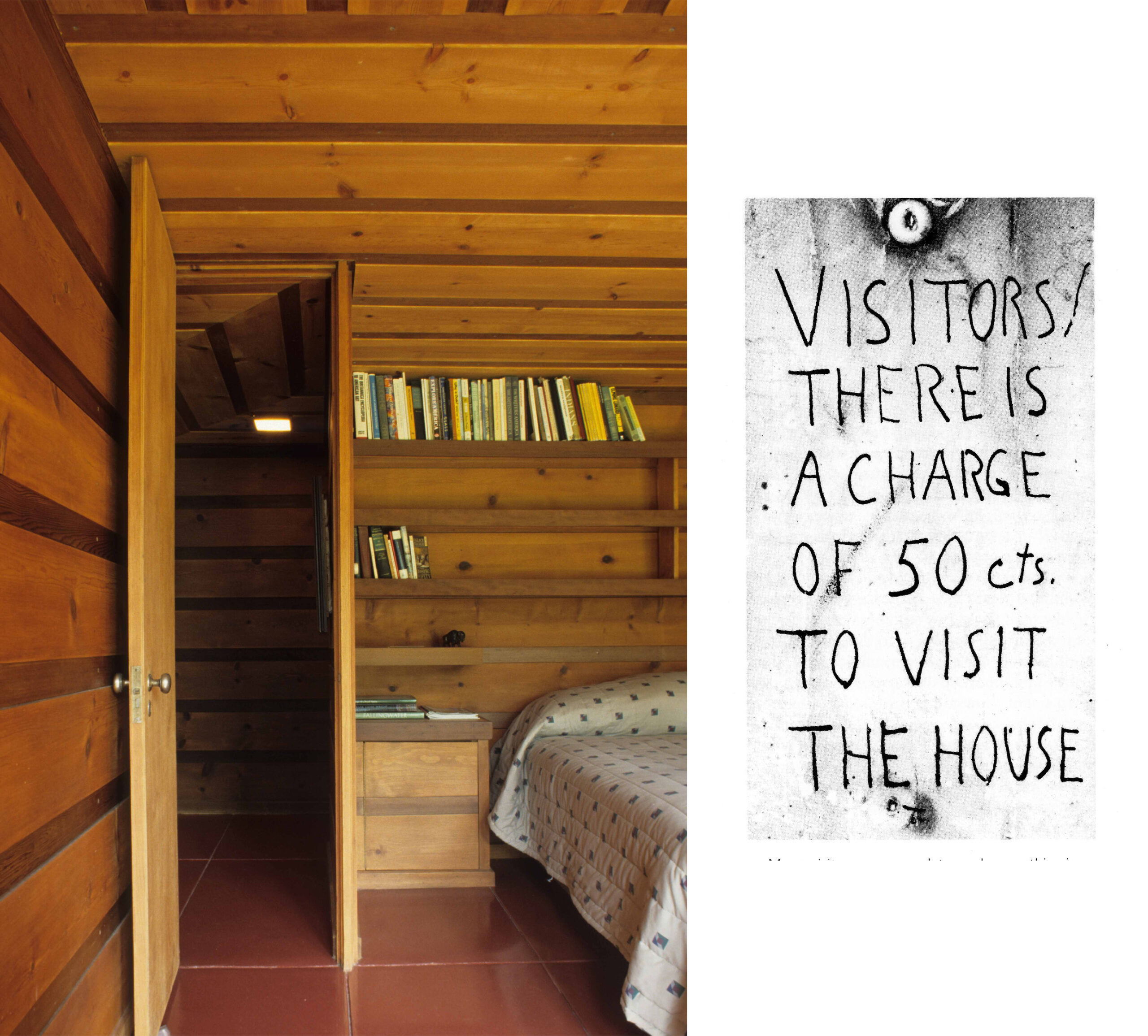 右写真/この住宅ができあがると見学者が殺到したためJacobs氏は、見学者から入場料をとることにしました。入場料でライトに支払った設計料がまかなえたとのことです。(出典 BUILDING WITH FRANK LLOYD WRIGHT by HERBERT JACOBS)