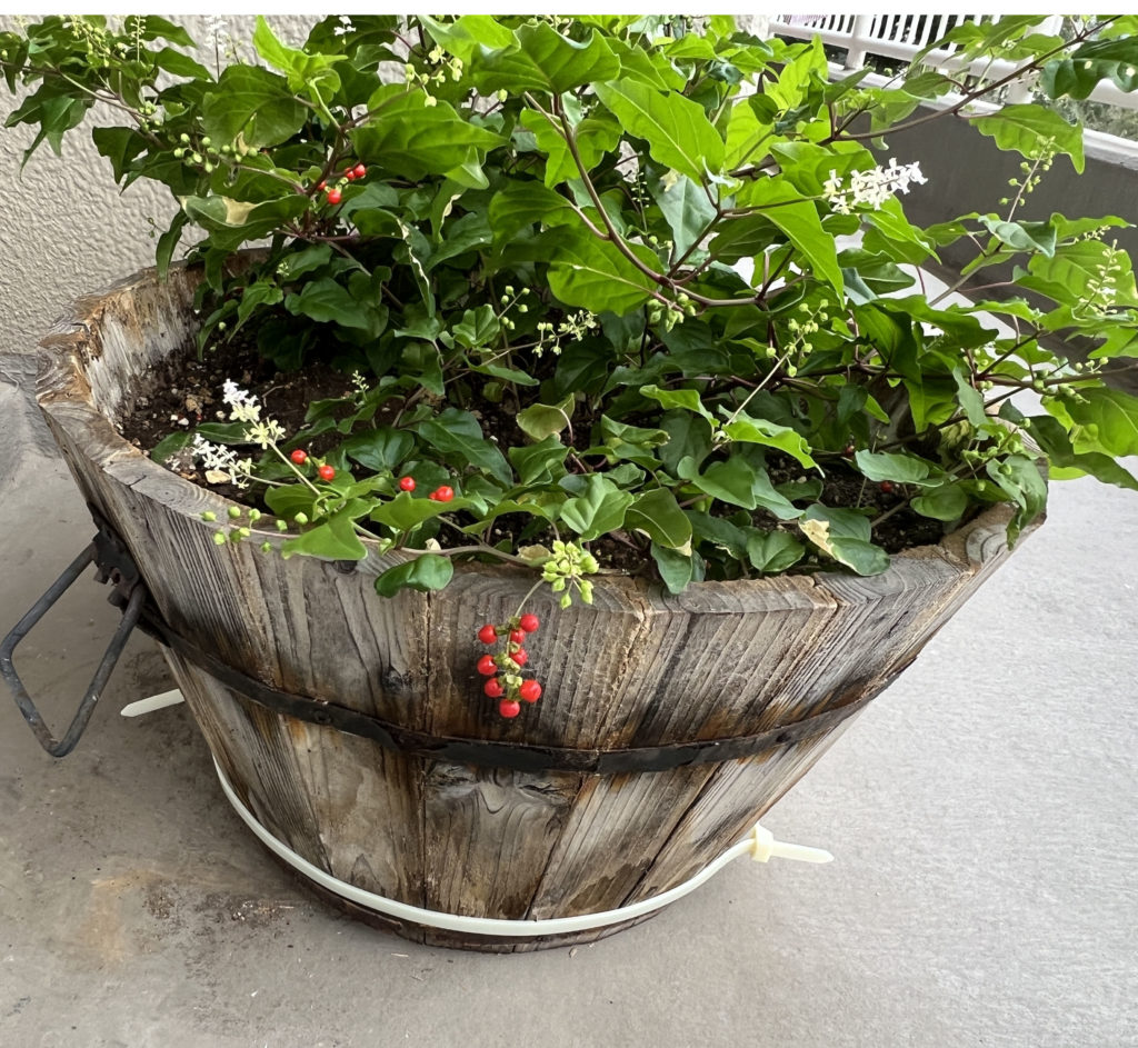 10年以上使っている木製の植木鉢。