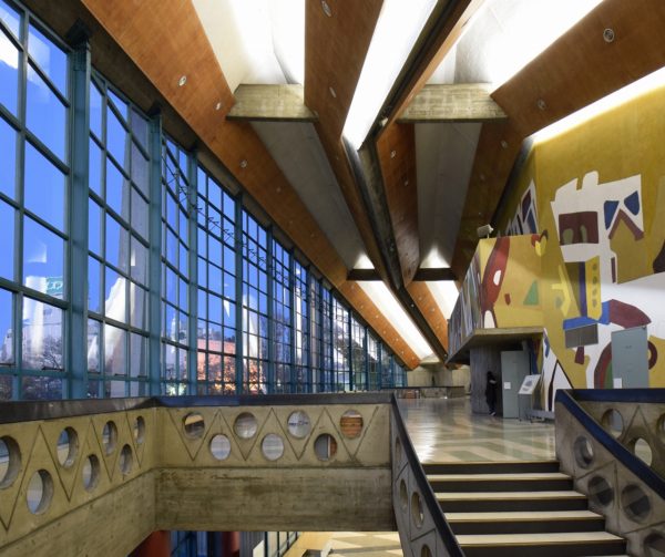 久しぶりに中に入った。大きな全面ガラスのホワイエ、コンクリート折半シェルの大空間。
