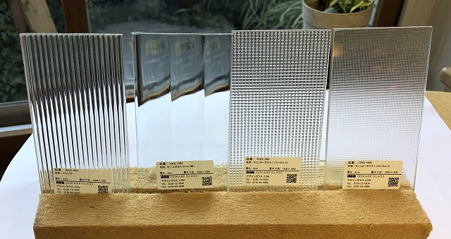 型ガラスのサンプルを取り寄せました。このメーカーは柄が豊富。30種類以上あります。その中からシンプルなモール調(ストライプ)と… -
