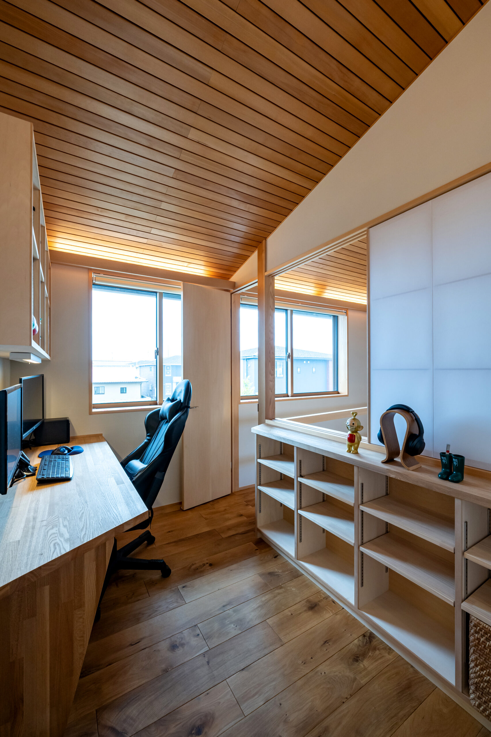 吹抜に面した2階に書斎を設けている