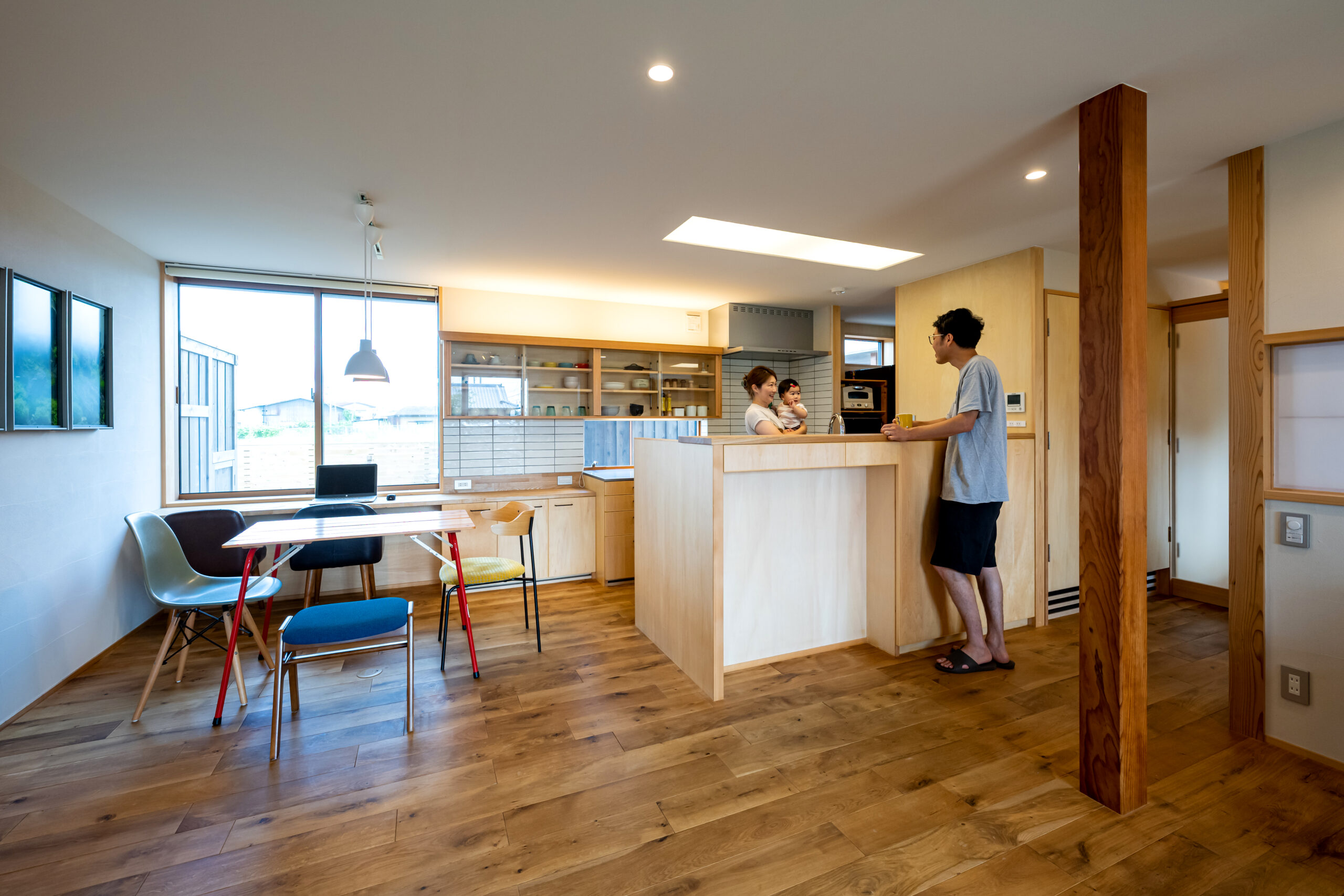 ダイニングテーブルとキッチンの距離が近く、配膳しやすい配置