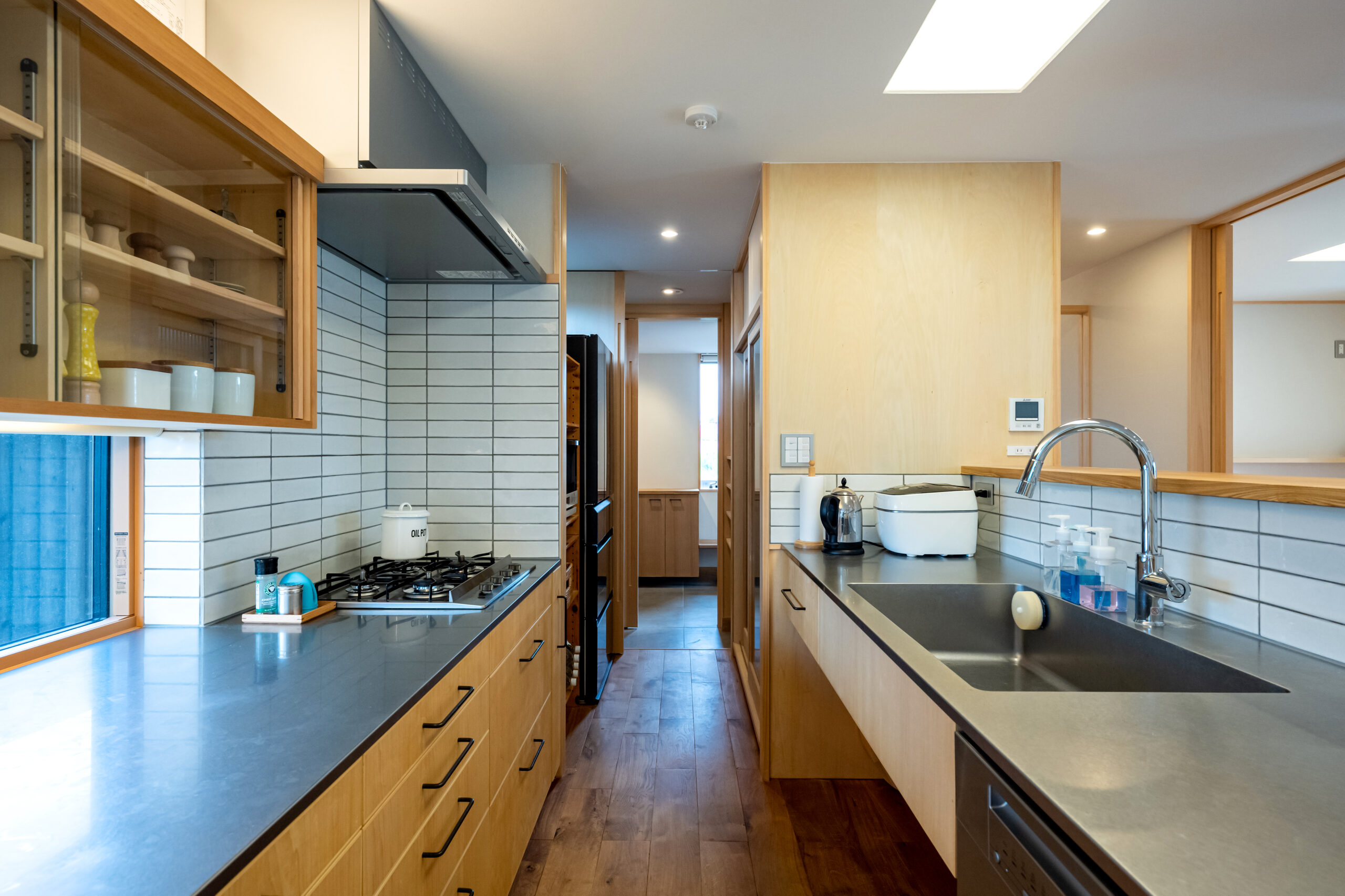 Ⅱ型の造作キッチン、その脇にはパントリー収納