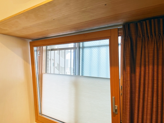 内側に付加した防音木製窓
