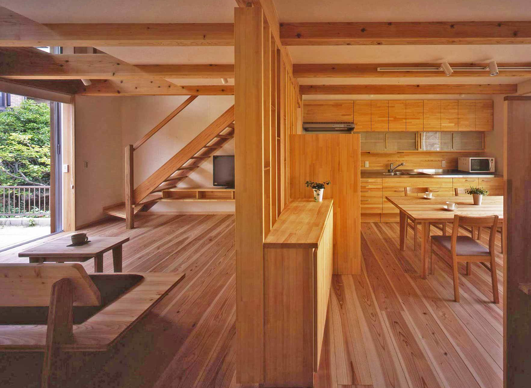 居間とダイニングを仕切る格子。風と視線は通り抜けます。